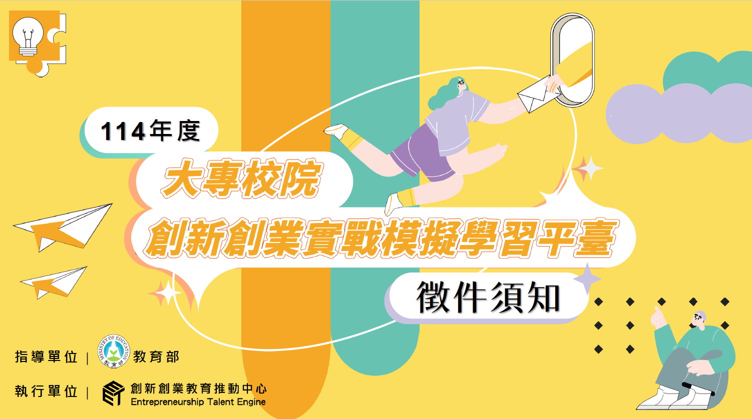 🏆️114年大專校院創業實戰模擬學習平臺🏆️─歡迎師生團隊踴躍報名參加!!依注資結果評比優選者,全額補助每案最高新臺幣20萬元。