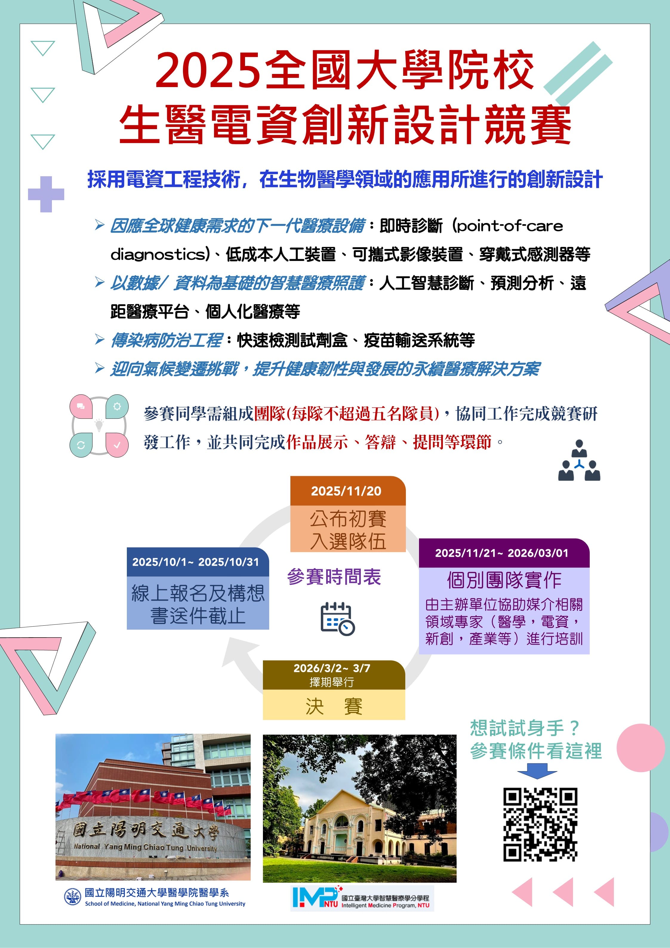 【競賽】國立陽明交通大學-2025全國大學院校生醫電資創新設計競賽